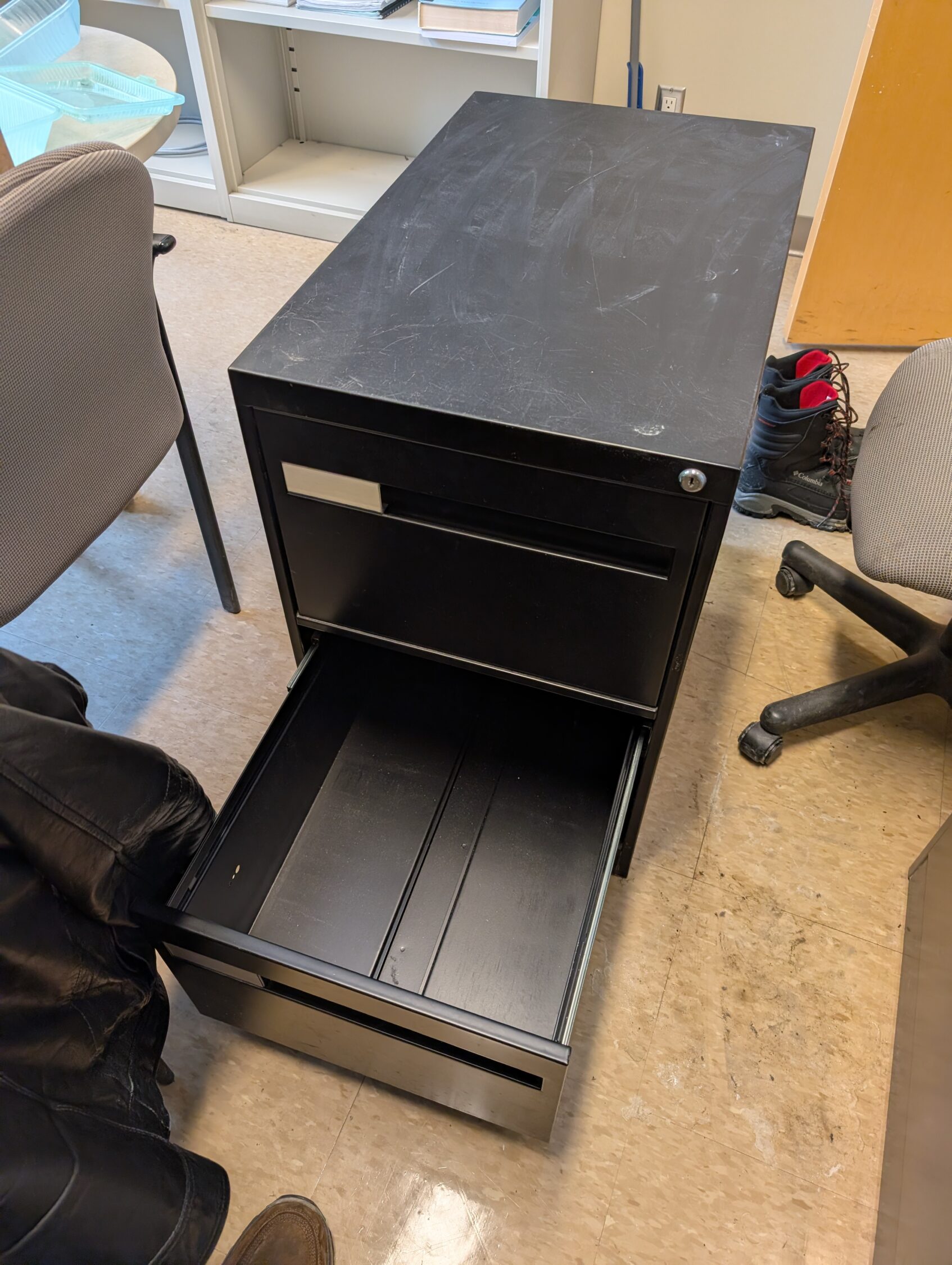 Small filing cabinet. Good condition. Keys not included, but drawers are currently unlocked and usable. Completely empty.